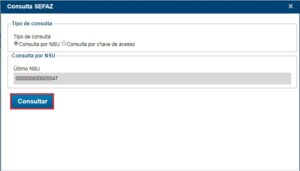 Ao optar pela consulta por NSU, será preenchido automaticamente o último NSU da empresa, devendo então clicar no botão ‘Consultar’.