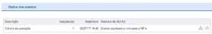 Após o envio dos eventos, será criado um registro na aba Eventos, na tela de detalhes do documento, onde será possível fazer download do arquivo XML de cada evento enviado.