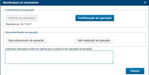 – Conhecimento da operação, contemplando os eventos de Ciência da operação e Confirmação da operação.
