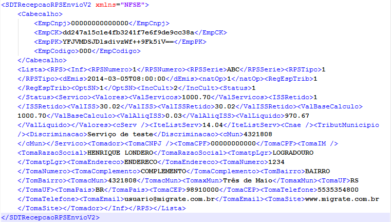 Observe que a CK gerada foi incluída na tag <EmpCK>.