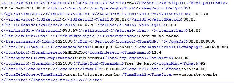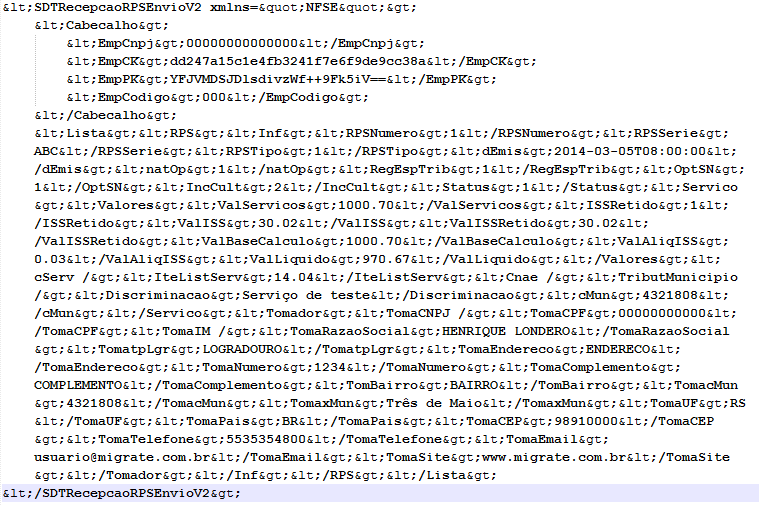 - Recepção RPS é chave de acesso + <Lista>… </Lista> (sempre com todo o conteúdo da tag)