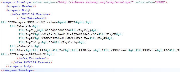 8. XML inserido no pacote SOAP e pronto para envio ao InvoiCy NFS-e: