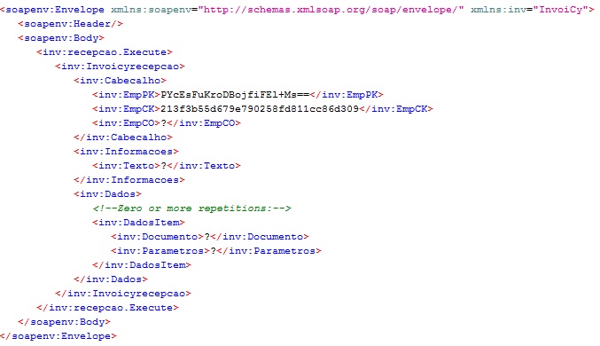 Obs: Caso deseje enviar mais de um documento, deve-se repetir a TAG <inv:DadosItem>, contendo o conteúdo dos documentos a serem enviados.