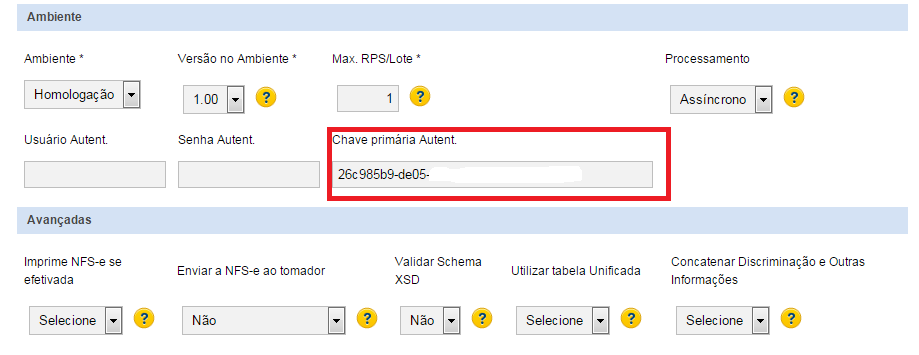 Já no cadastro da empresa no sistema InvoiCy, deve informar o valor da chave de autenticação no campo “Chave Primária Autenticação”, de acordo com a imagem abaixo: