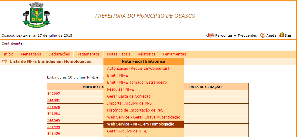 Não existe um ambiente exclusivo para homologação no padrão e-Governe ISS, o que define se a emissão ou cancelamento da NFS-e é destinada à homologação ou produção é o valor enviado em uma tag <homologacao> que é esperada nestes 2 web services, para consultar as NFS-e emitidas em homologação deve-se acessar através do menu “Notas Fiscais -> web Service – NF-e em Homologação”, o usuário será redirecionado para uma página contendo as últimas 10 NFS-e emitidas em homologação.
