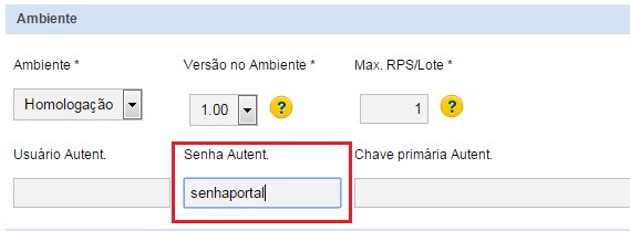 Para realizar a comunicação com o Web Service, deve-se informar no cadastro da empresa a senha que a mesma utiliza para acessar o portal de NFS-e da prefeitura, como mostra a imagem abaixo: