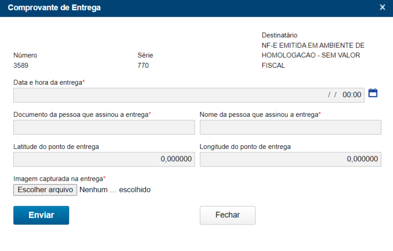 Data e hora da entrega – Deve informar a data e hora do final da entrega