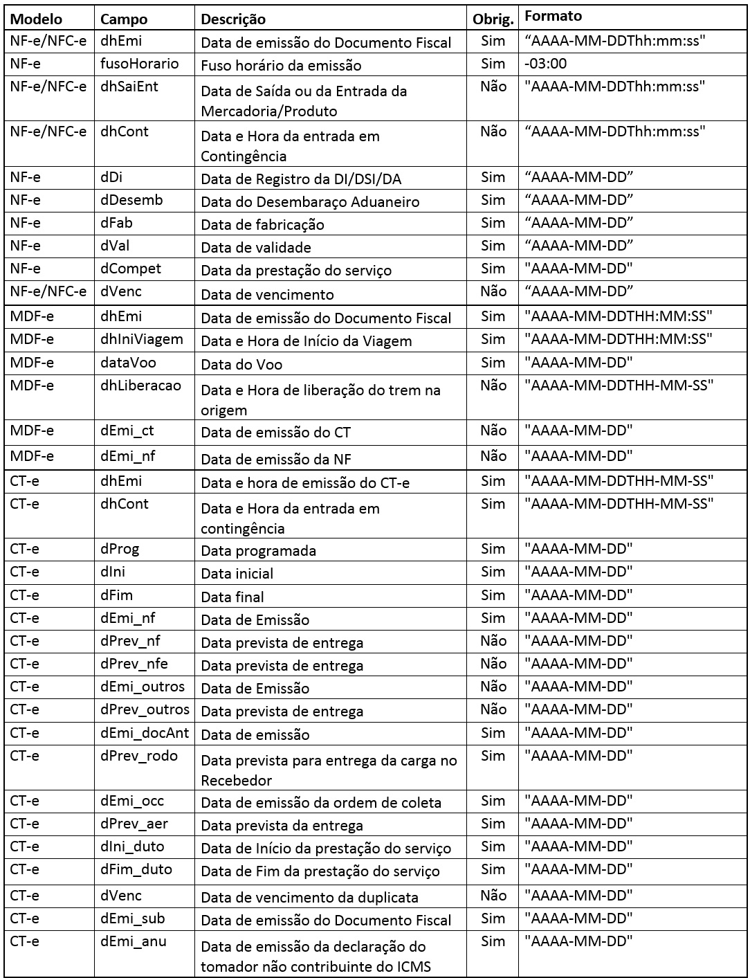 Vale ressaltar que essa validação já ocorre para campos do tipo Numeric e passará a ser aplicada nos campos Date, DateTime e Carácter. Desta forma, para adequar seu sistema, basta seguir a mesma lógica dos campos tipo Numeric e aplicá-la também sobre os campos do tipo Date, DateTime e Carácter, ou utilizar a regra padrão, se não precisa informar algum valor para um campo, não inclua a tag no XML.