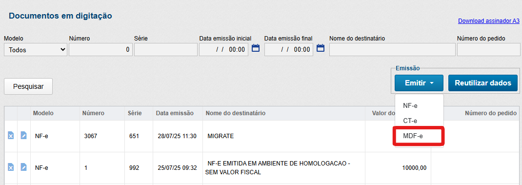 Digitação MDF-e