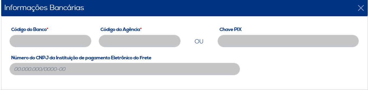 Além disso, será possível acessar mais três opções a serem preenchidas, ao inserir as informações do pagamento de frete, sendo estas: Informações Bancárias, Componentes do Pagamento do Frete e as Informações do Pagamento a Prazo.