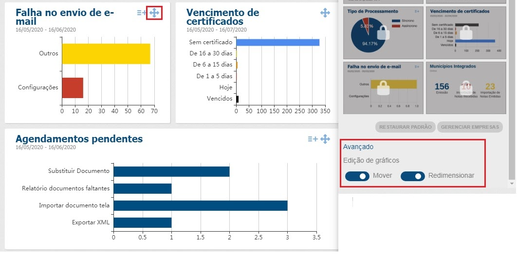 - Restaurar a ordem dos gráficos conforme o padrão de configuração do sistema. Porém, devido ao formato de cada gráfico, pode ser que alguns não se posicionem no local desejado.