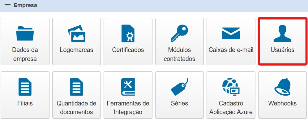 Caso o parceiro não queira liberar a um usuário normal específico, ele deverá acessar o cadastro de "Usuários" no grupo Empresa do "Painel de Controle".