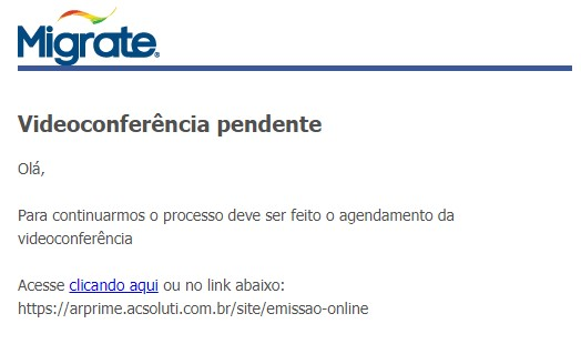 Pendente videoconferência: É exibido após o cliente realizar a compra do certificado pela tela de checkout, enquanto a videoconferência não for realizada. Esta por sua vez, tem o objetivo de realizar a validação da documentação utilizada pelo cliente no momento da compra, validação via SMS, match biométrico facial e prova de vida do cliente. Caso o cliente demore para realizar a videoconferência, serão enviados avisos por e-mail, conforme exemplo aqui.