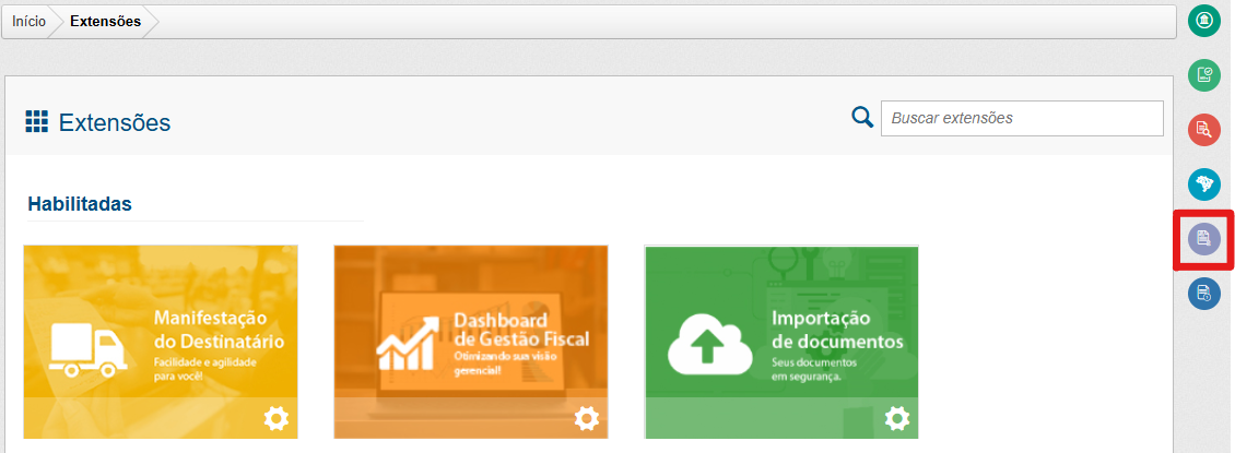 Para realizar a ativação desse serviço, abra a janela de "Extensões" no canto superior direito do InvoiCy e clique no ícone da extensão "InvoiCy Certificado Digital".