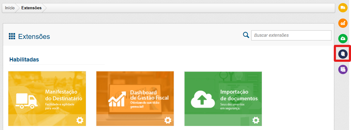Para realizar a ativação desse serviço, abra a janela de "Extensões" no canto superior direito do InvoiCy e clique no ícone da extensão "InvoiCy Compliance".