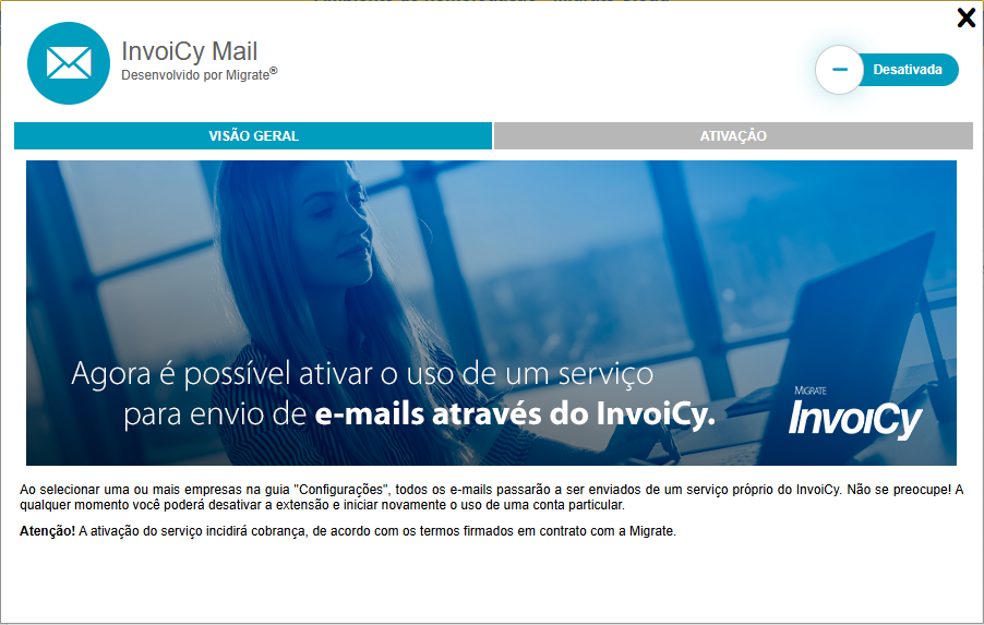 Esta extensão tem o intuito de realizar o processamento de e-mails por meio de um serviço próprio. Com a ativação da extensão InvoiCy Mail, todos os e-mails serão gerados e enviados diretamente pelo sistema, dispensando o uso de uma conta particular.