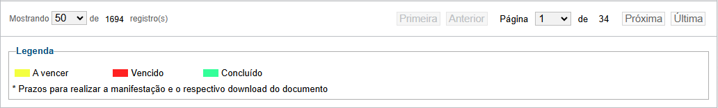 - Vencido: indica os documentos que estão com prazo de manifestação vencido;