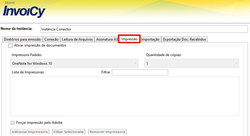 Em seguida, acesse a aba "Impressão", conforme evidenciado a seguir: