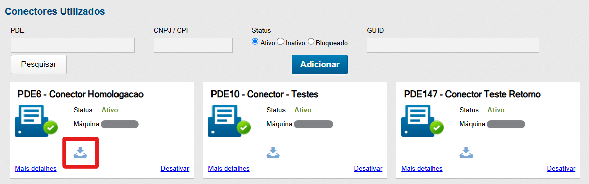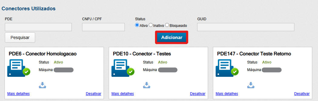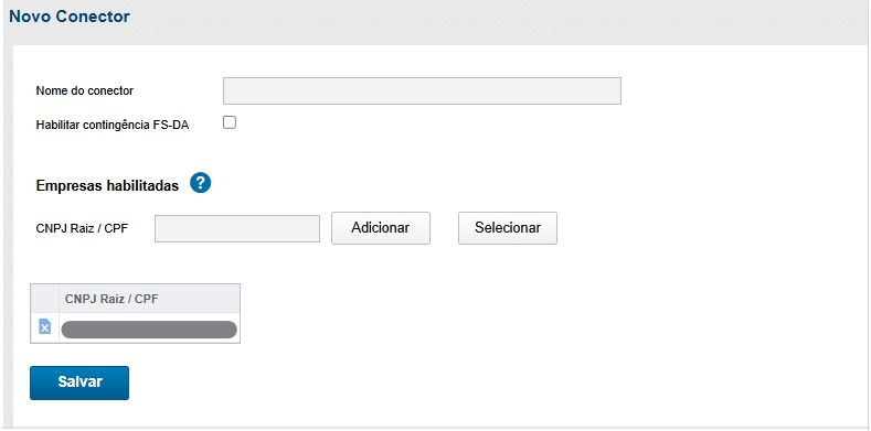 Ressaltando que, o Conector é único para uma máquina, sempre que utilizar o Conector em máquinas diferentes deverá cadastrar Conectores diferentes. Assim como, para emissão em modo de homologação e produção, em que o cadastro deverá ocorrer em ambientes diferentes.