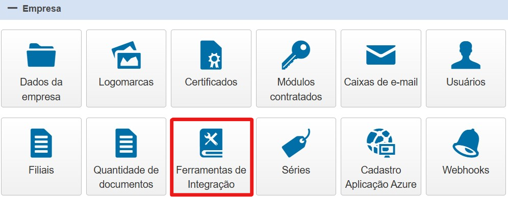 Com a geração do hash MD5, é possível validar o código gerado pelo seu sistema comparando-o com o código esperado pelo InvoiCy, através de uma calculadora MD5 que gera o código Hash chamado no Web Service. Para utilizar este recurso, acesse a tela "Ferramentas de Integração" no grupo Empresa, dentro do Painel de Controle, conforme destacado abaixo: