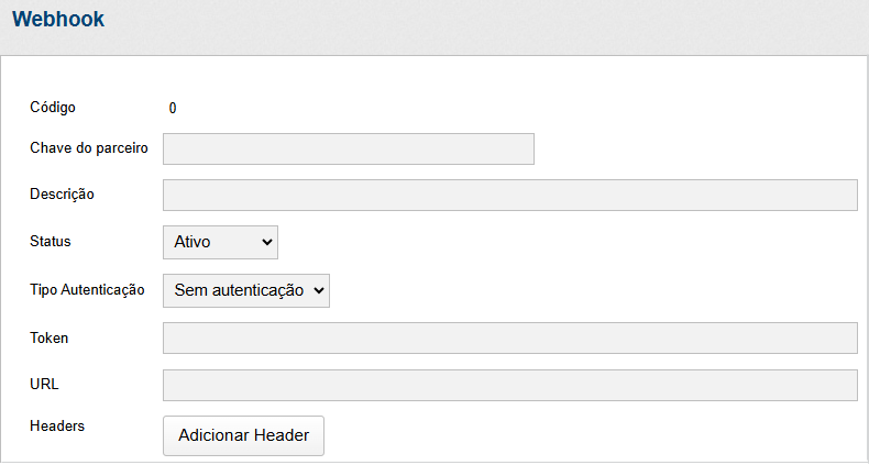 Chave de Parceiro: Ao cadastrar um novo Webhook deverá informar a chave de parceiro desejada.