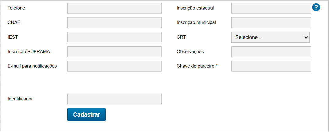 Para iniciar este cadastro preencha corretamente as informações solicitadas na tela relacionada aos dados da empresa, para garantir a validação do cadastro. Informando dados como o nome fantasia, apelido, a razão social, CNPJ, o endereço e a chave de parceiro.