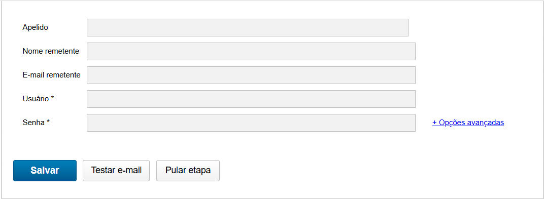 Cadastrar Nova Caixa de E-mail: Esta será a opção padrão, onde o usuário poderá cadastrar normalmente uma caixa de e-mail, inserindo os dados necessários corretamente.