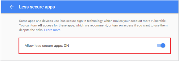 Como exemplo utilizamos uma conta de e-mail usando o servidor do Gmail (Google), o qual retornou erro de configuração e através de um e-mail o serviço avisou sobre a falha ocorrida. Desta forma, observou-se que no caso do provedor do Google, a conta de e-mail exige uma configuração específica para utilizar a comunicação via e-mail, onde deve-se ativar a opção "Permitir aplicativos menos seguros" ou "Allow less secure apps".