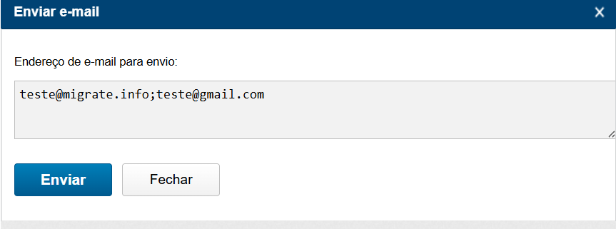 Ao clicar no ícone de envio de e-mail abrirá uma tela, na qual os endereços de e-mail informados na tag EmailArquivos e na tag correspondente ao e-mail do destinatário serão preenchidos automaticamente.