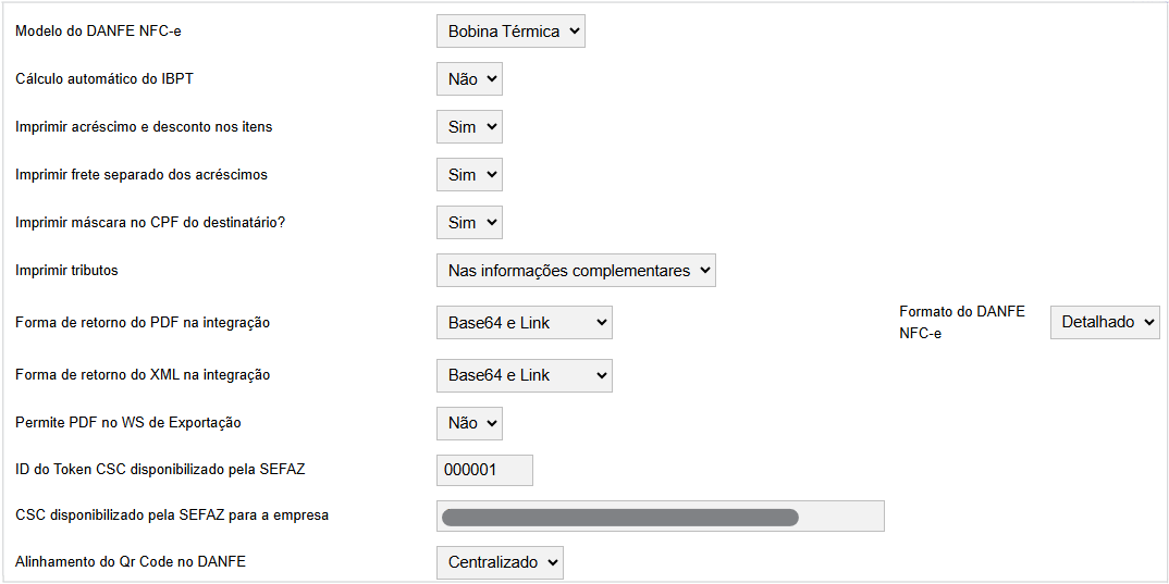 Através desta tela, configure os seguintes campos para a impressão da NFC-e: